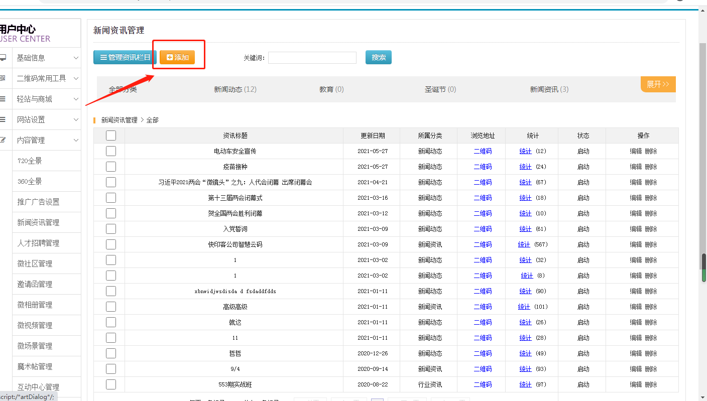 新聞資訊管理也稱之為美文系統,它可以將所有需要通過圖文信息展示的內容添加進去,從而生成相應的二維碼,掃碼后可轉發給朋友或朋友圈。