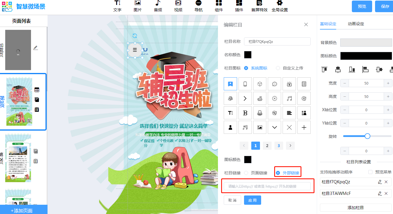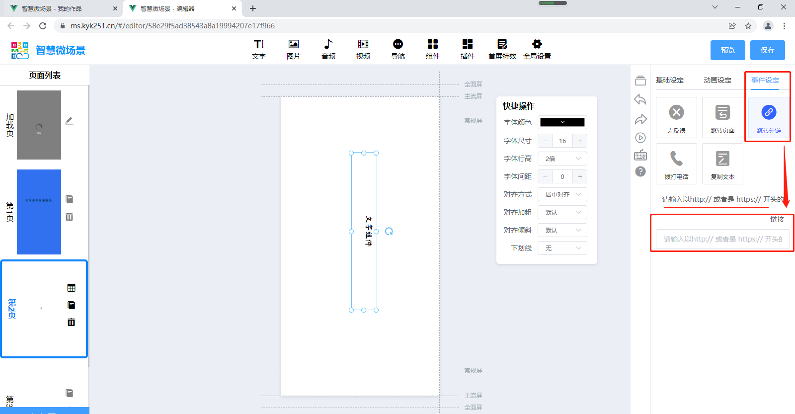 跳轉外鏈:設置一個網址,點擊后跳轉到這個網頁上。以http://或https://開頭設置網址