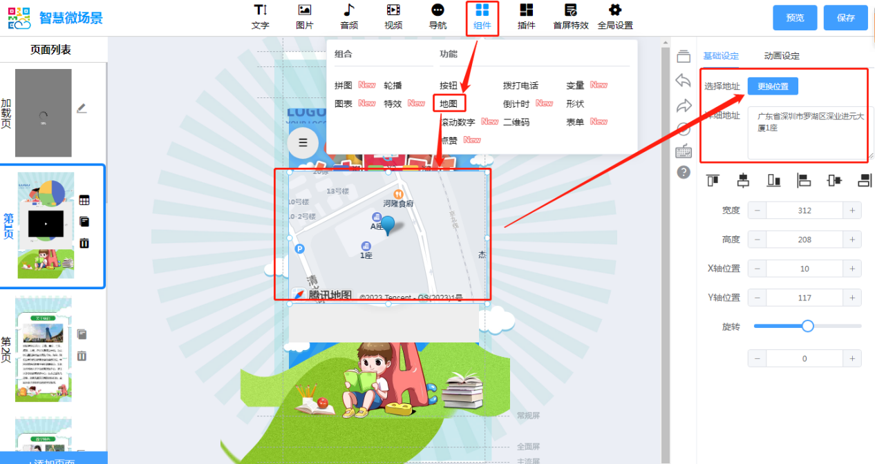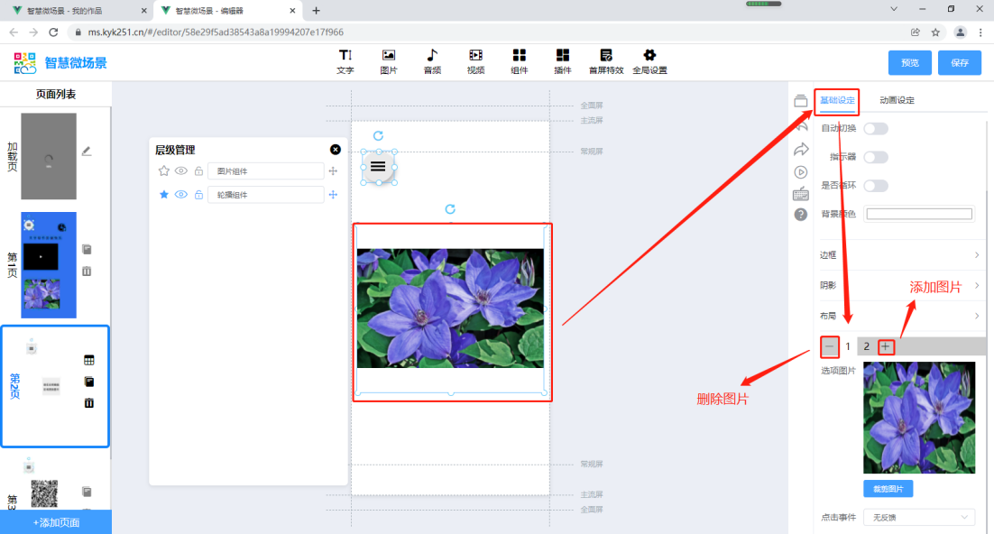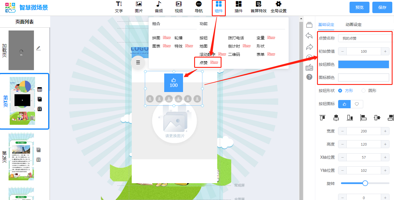 點擊圖片組件后,在頁面上增加一個圖片組件,可以更換圖片。