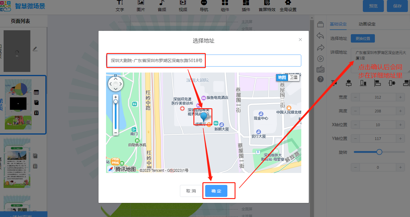 可在右側針對視頻組件編輯,有二個設定:基礎設定、動畫設定。(與上方設定方法一致)