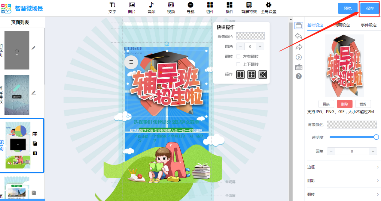 4、內容都編輯設置好后,點擊右上角保存按鈕
