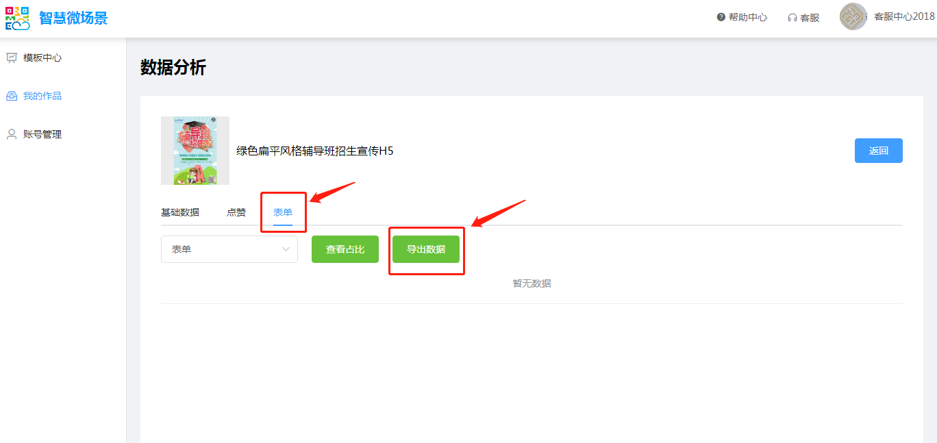 通過表單組件(組件合集里的表單)所收集的數據在這里查看,并可以導出數據: