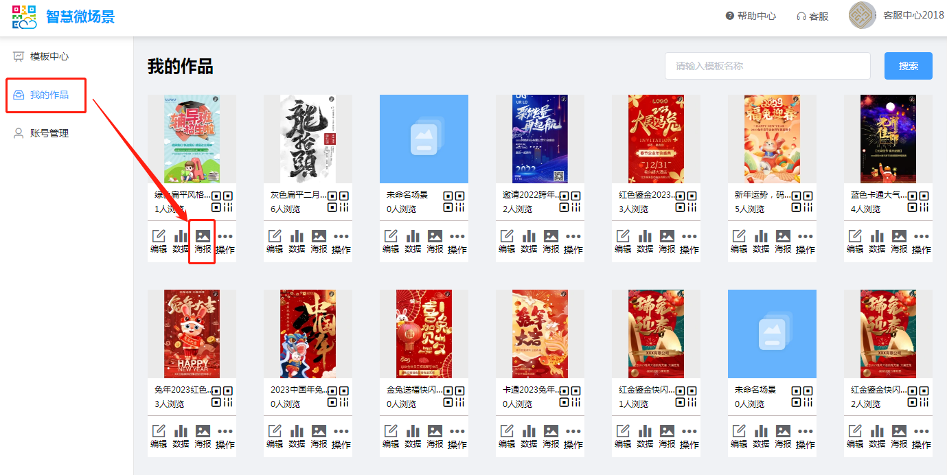 7、推廣海報,點擊我的作品-海報,可以編輯這個作品的海報信息。如下圖所示:
