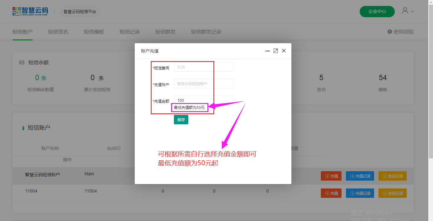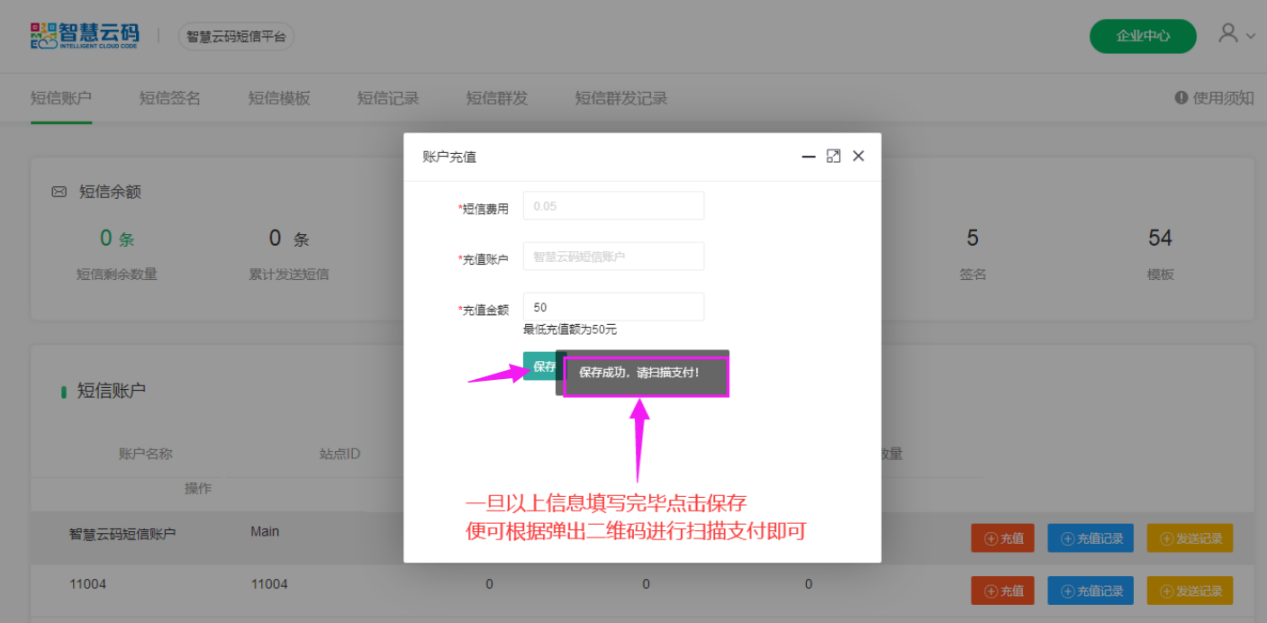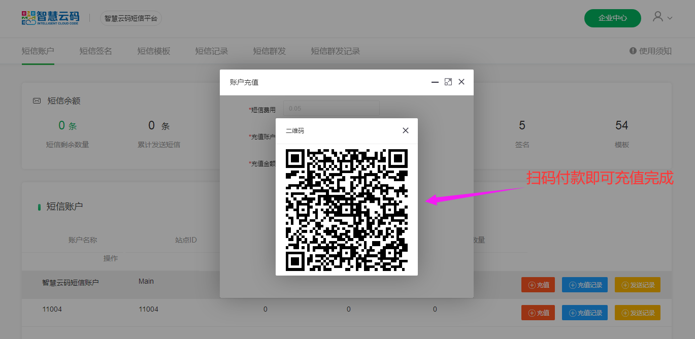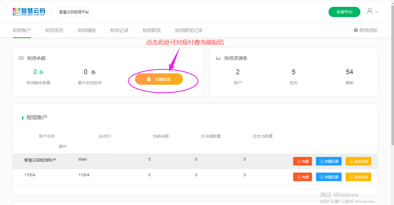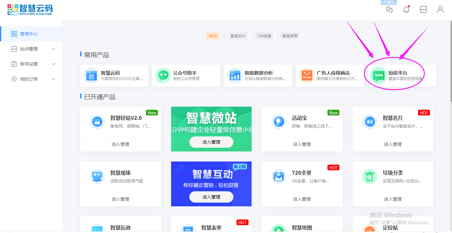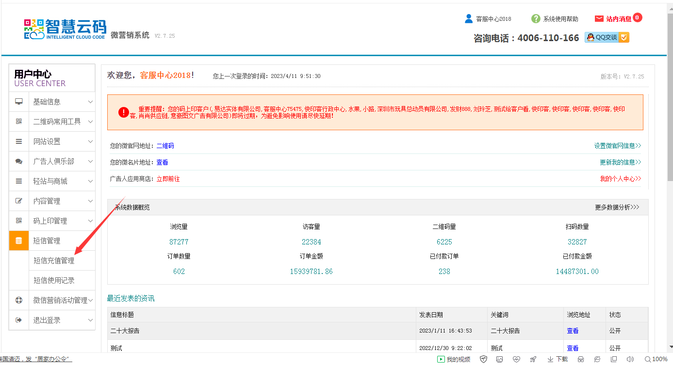 首先,登錄智慧云碼系統,點擊短信充值管理,有2種途徑均可對應進入找到該板塊,如下圖所示: