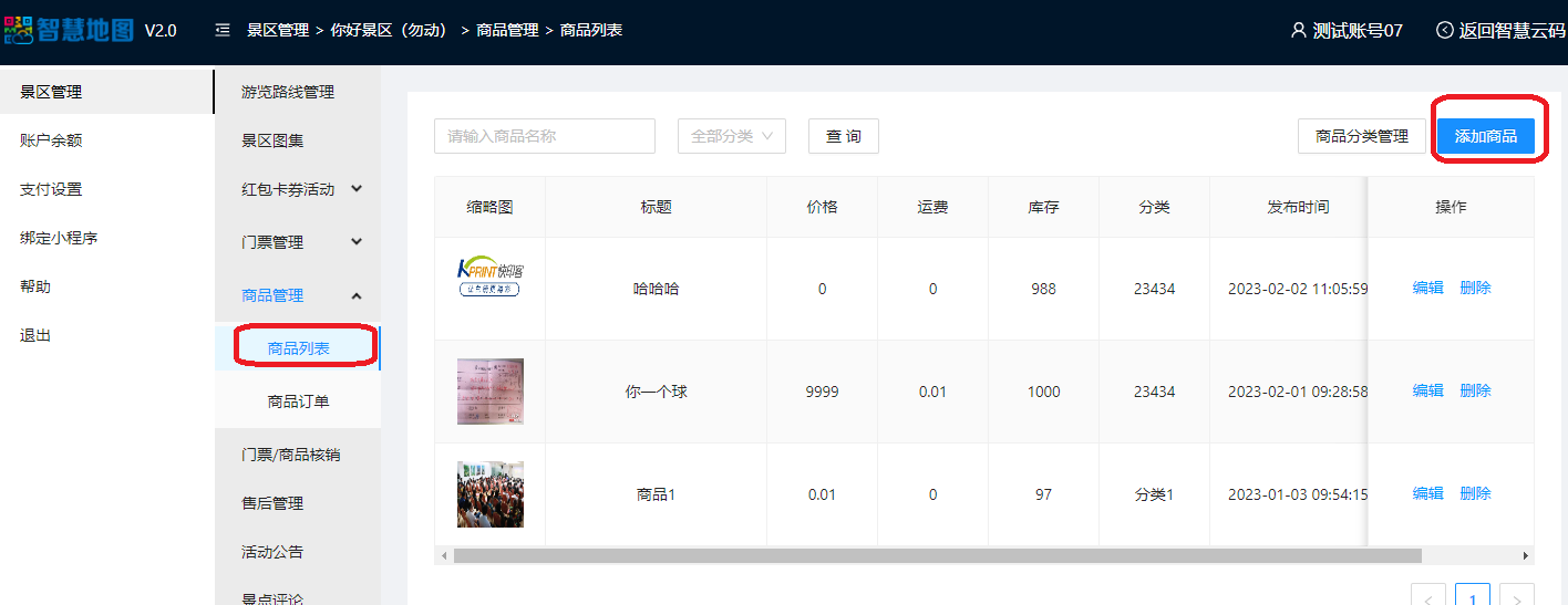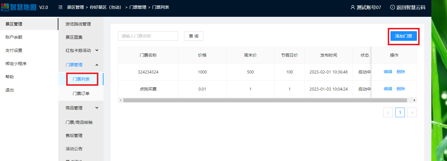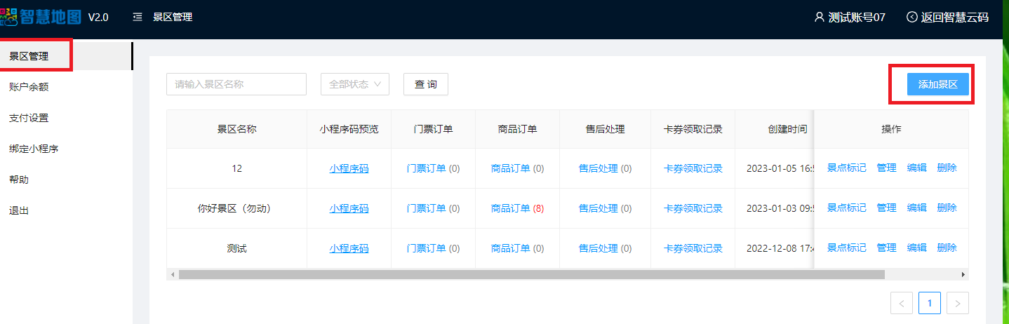 第一步:點擊景區管理中的【添加景區】。如下圖所示: