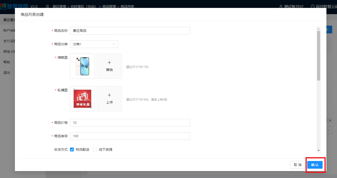 第三步:在商品創建頁面輸入商品信息,點【確認】按鈕即可。如下圖所示: