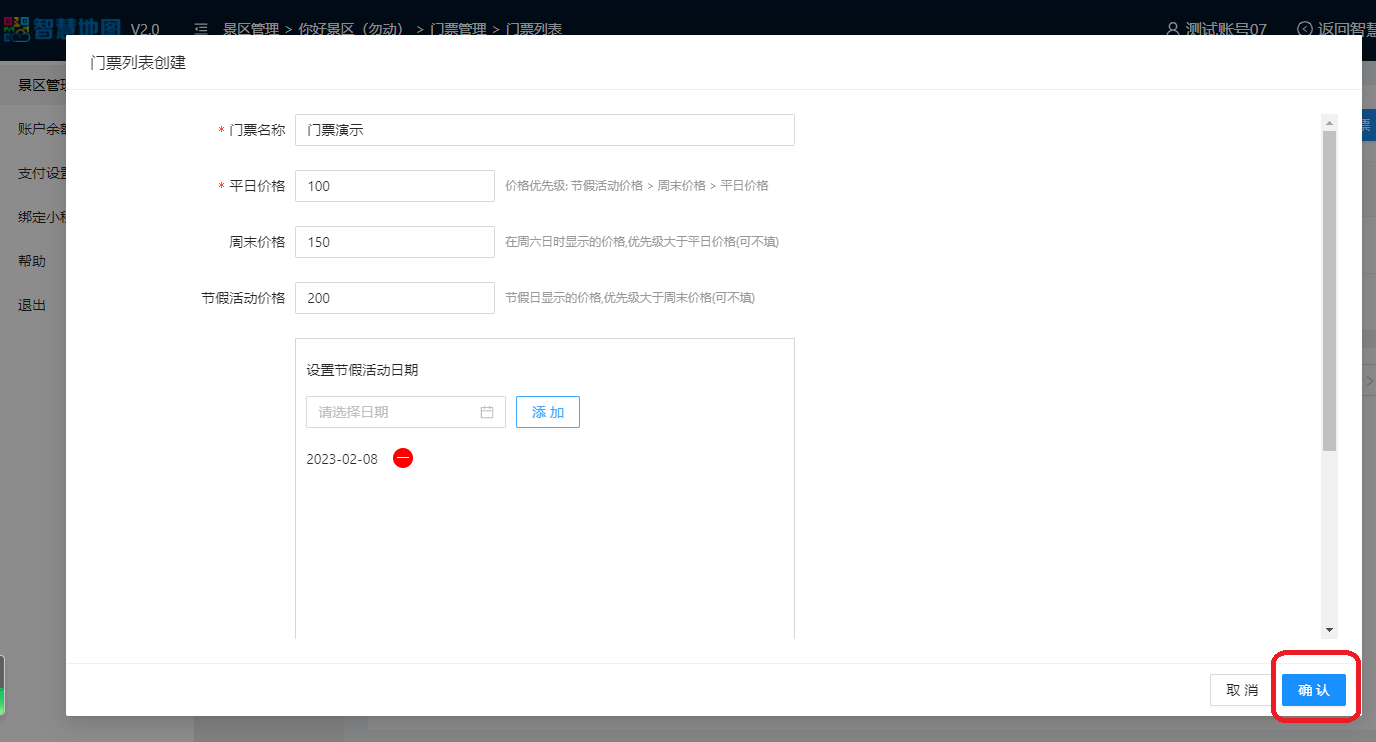 第三步:在門票創建頁面輸入門票信息,點【確認】按鈕即可。如下圖所示: