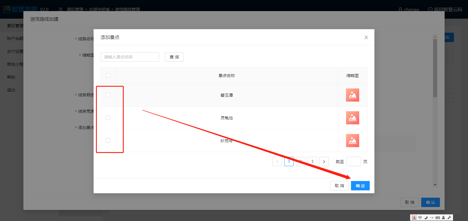 第一步:進入智慧地圖V2.0。在景區管理列表,在新建好的某一個景區,點擊景點管理,進入景點管理頁面。如下圖所示: