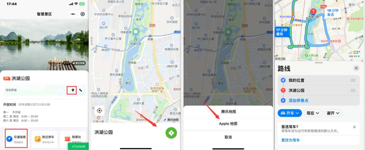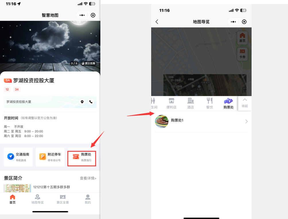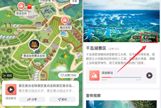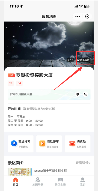 第一步:先進入景點詳情,第二步點擊全景預覽(只有設置了全景的景點才會顯示該入口);如下圖所示: