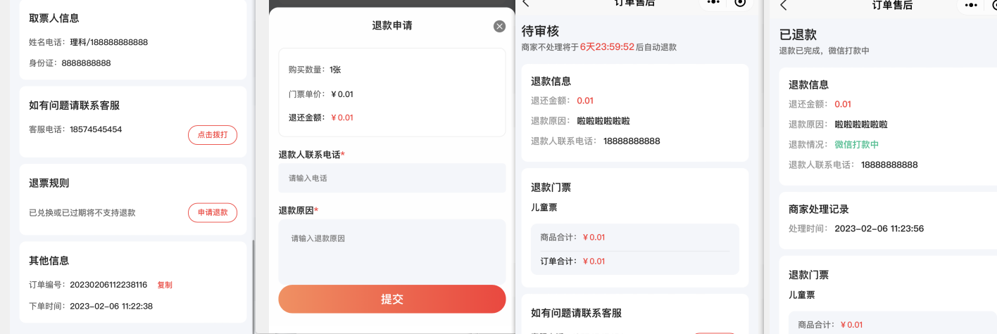 在訂單詳情頁點擊申請退款按鈕,填入信息等待審核。如下圖所示: