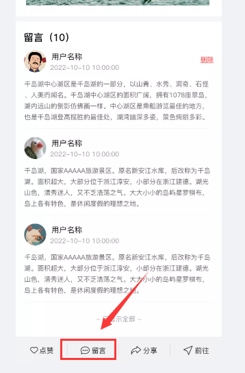 進入景點詳情,下方則有評論按鈕,用戶可自行刪除自己的評論。如下圖所示: