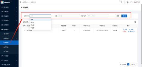 第一步:菜單欄的助農振興-監督舉報,可以根據處理狀態、標題、舉報人名稱/電話搜索對應的監督舉報。如下所示: