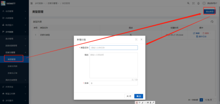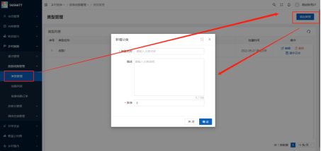 第一步:添加類型。菜單欄的鄉村旅游-農家樂管理-類型管理,點擊【添加類型】,填寫類型名稱等信息。(注:已有類型名稱,可不添加)如下所示: