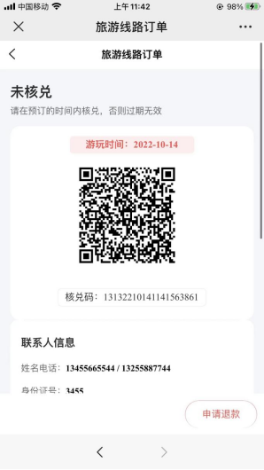 注:核銷密碼是用線路旅游時,核銷線路使用的。如下所示: