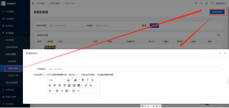 第二步:添加農家樂。菜單欄的鄉村旅游-農家樂管理-農家樂列表,點擊【添加農家樂】,填寫農家樂信息、價格、人數、核銷密碼等信息,然后點擊【確認】。