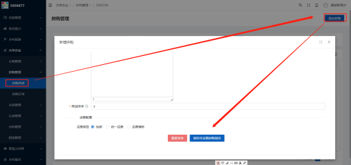 第一步:菜單欄的共享農業-拼購管理-拼購列表,點擊右上角的【添加拼購】,填寫標題、結束時間、運費等基本信息,點擊【保存并設置拼購項目】。如下所示: