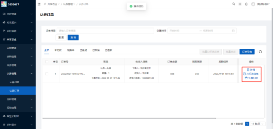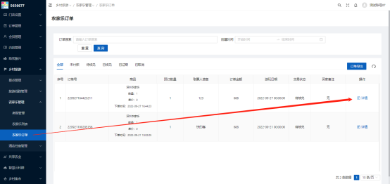 選擇鄉村旅游-農家樂管理-農家樂訂單,點擊某一個訂單的“詳細”;如下所示:
