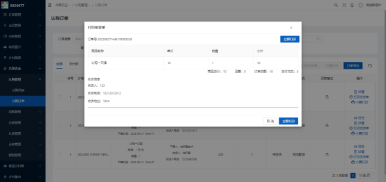 物流配送的發貨方式:在共享農業---各個管理(認購管理、拼購管理、合養管理、認養管理、合種管理)--各個訂單(認購訂單、拼購訂單、合養訂單、認養訂單、合種訂單)下,針對配送方式為物流配送,有發貨、打印發貨單、小票打印三個按鈕。如下所示: