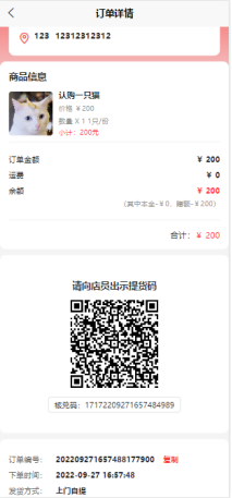 需客戶來指定的地點,去自提,在訂單詳情里,需提供提貨碼。