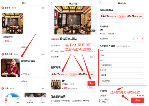 鄉村旅游的景點、旅游線路、農家樂、酒店住宿訂單。
