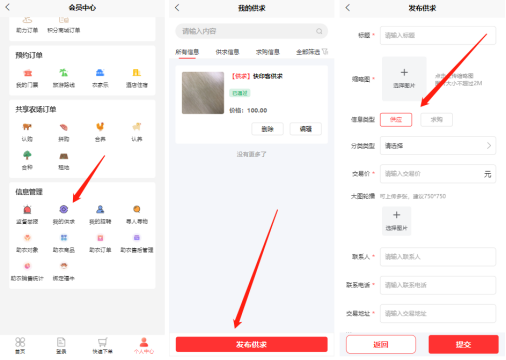 在個人中心-信息管理-我的供求,點擊進去了,可以發布供求。填寫信息時,需確定是供應還是求購。如下所示: