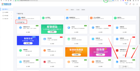 首先登錄智慧云碼系統,找到已開通產品點擊智慧鄉村V2.0,點擊進入即可,如下圖所示: