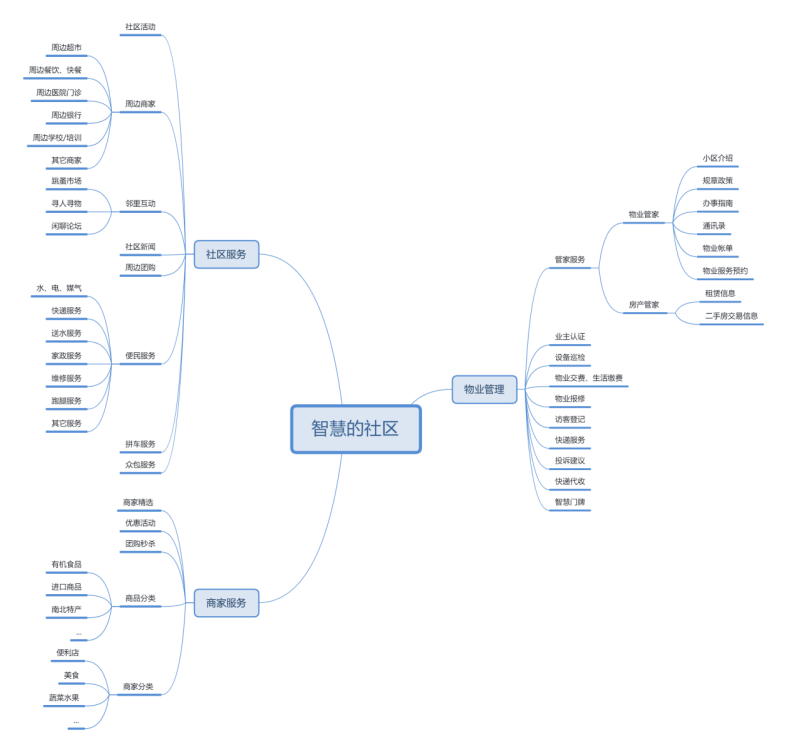 2、關于智慧的社區思維導圖框架介紹;如下所示: