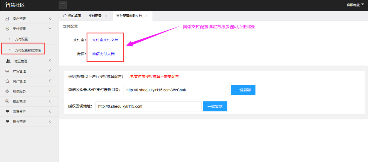 3.2.2、關于支付配置幫助文檔 。如下圖所示: