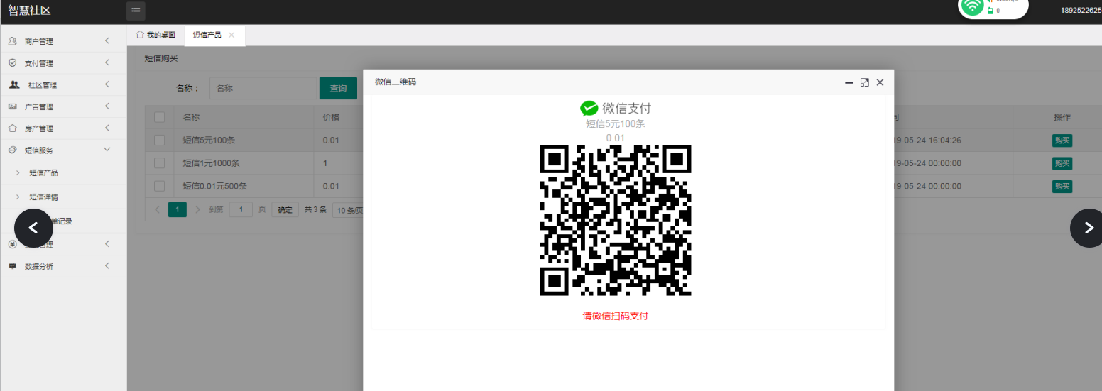 短信產品分為3種價格,不同的價格的產品數量不一樣,作用都是一樣,用于短信手機發驗證碼。如下圖所示: