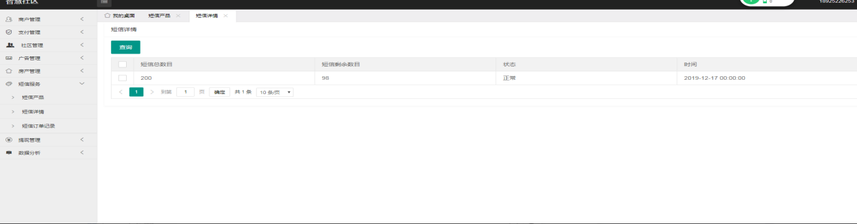 短信詳情是記錄購買后短信的使用情況。如下圖所示: