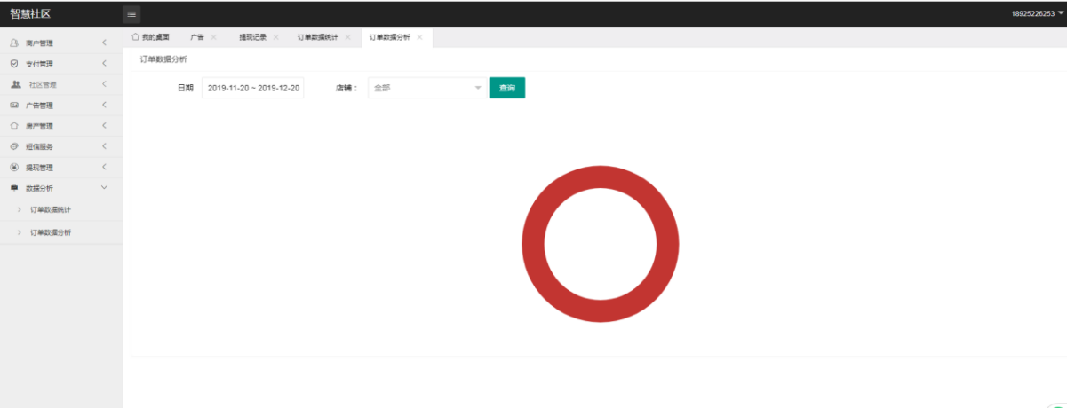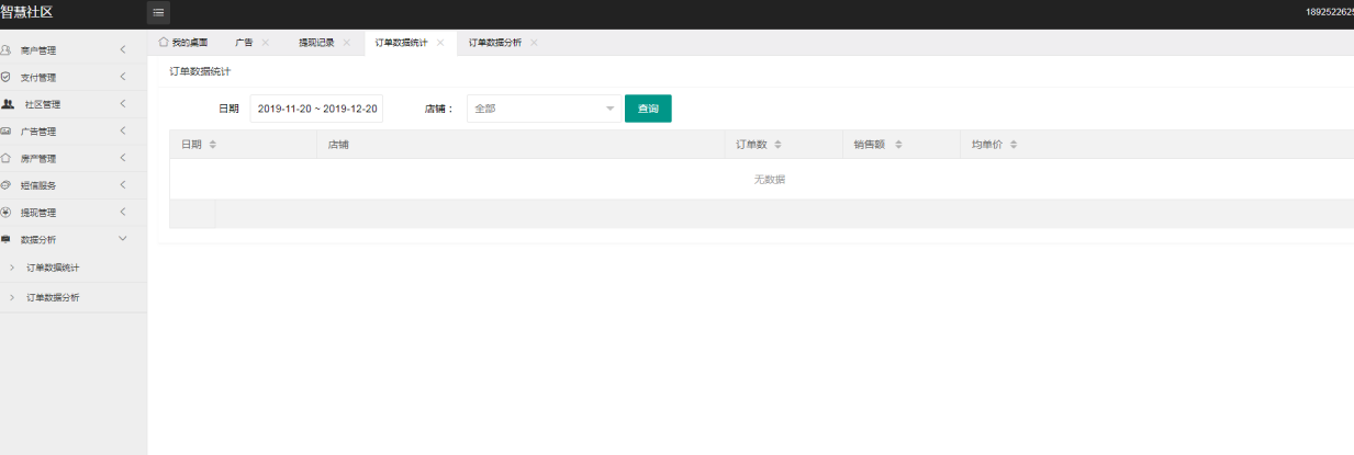 訂單數據統計可以按照時間段和不同的店面查詢特定店面生成的情況。如下圖所示: