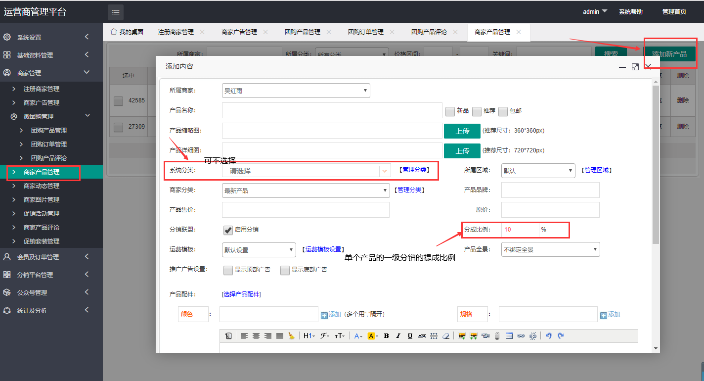 商圈平臺產(chǎn)品支持1級分銷,可根據(jù)產(chǎn)品不同,設(shè)置不同分銷比例。