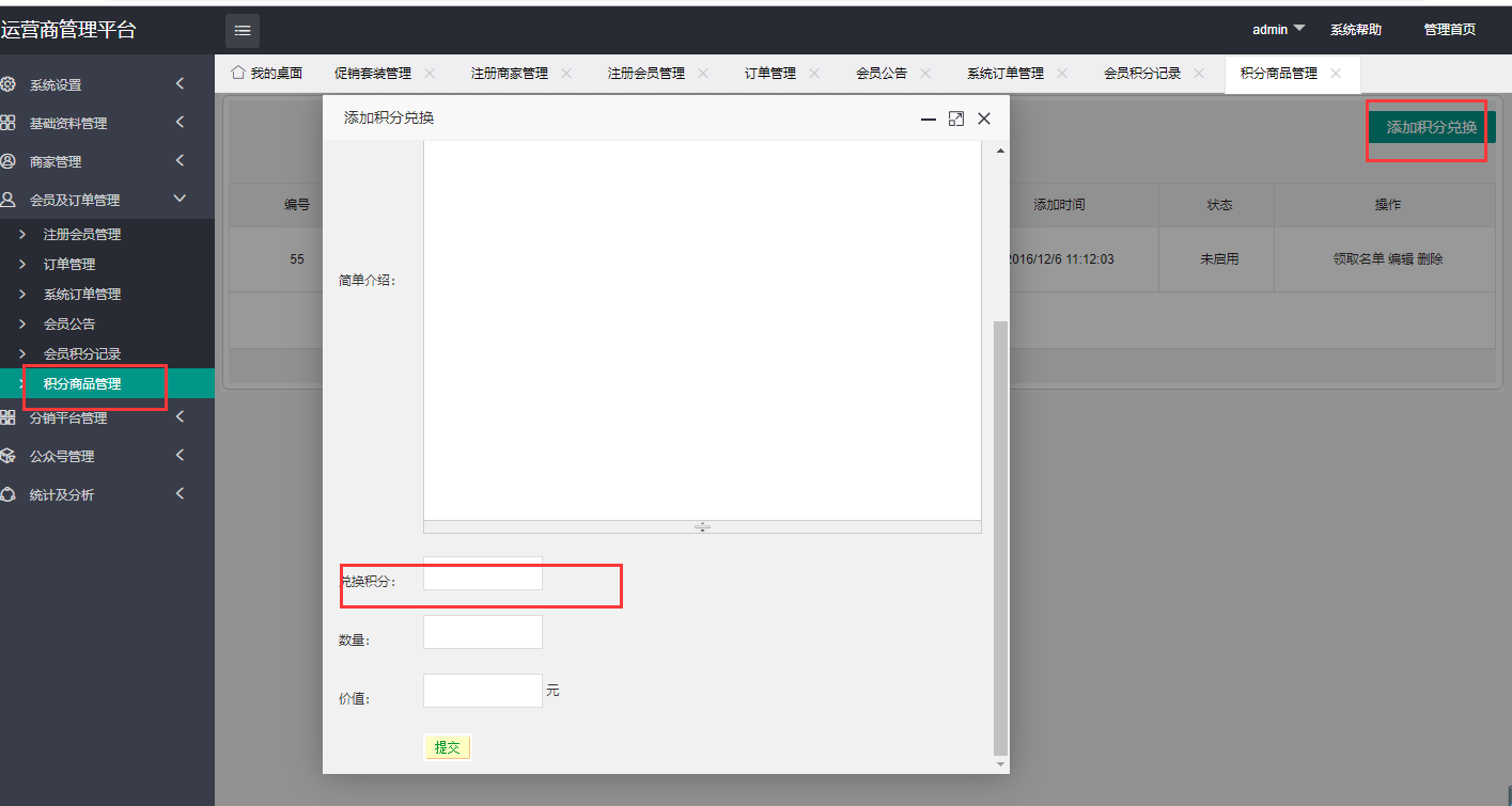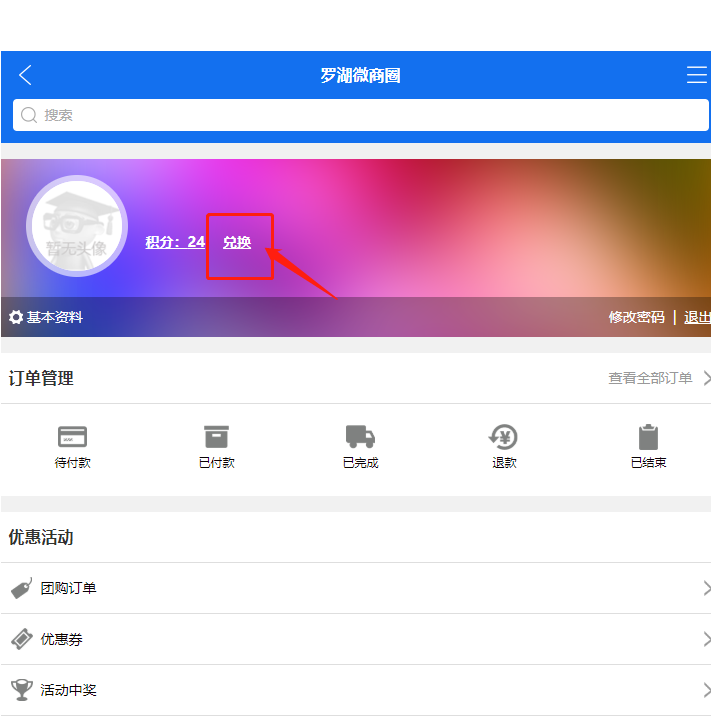 積分商品管理可添加積分兌換商品,需要注意,產(chǎn)品添加后能兌換,必須要進行勾選啟用。會員可在我的,會員中心,積分處,點擊,用積分兌換相關(guān)商品。如下圖所示: