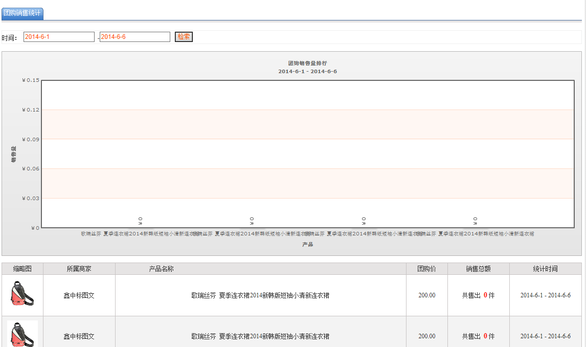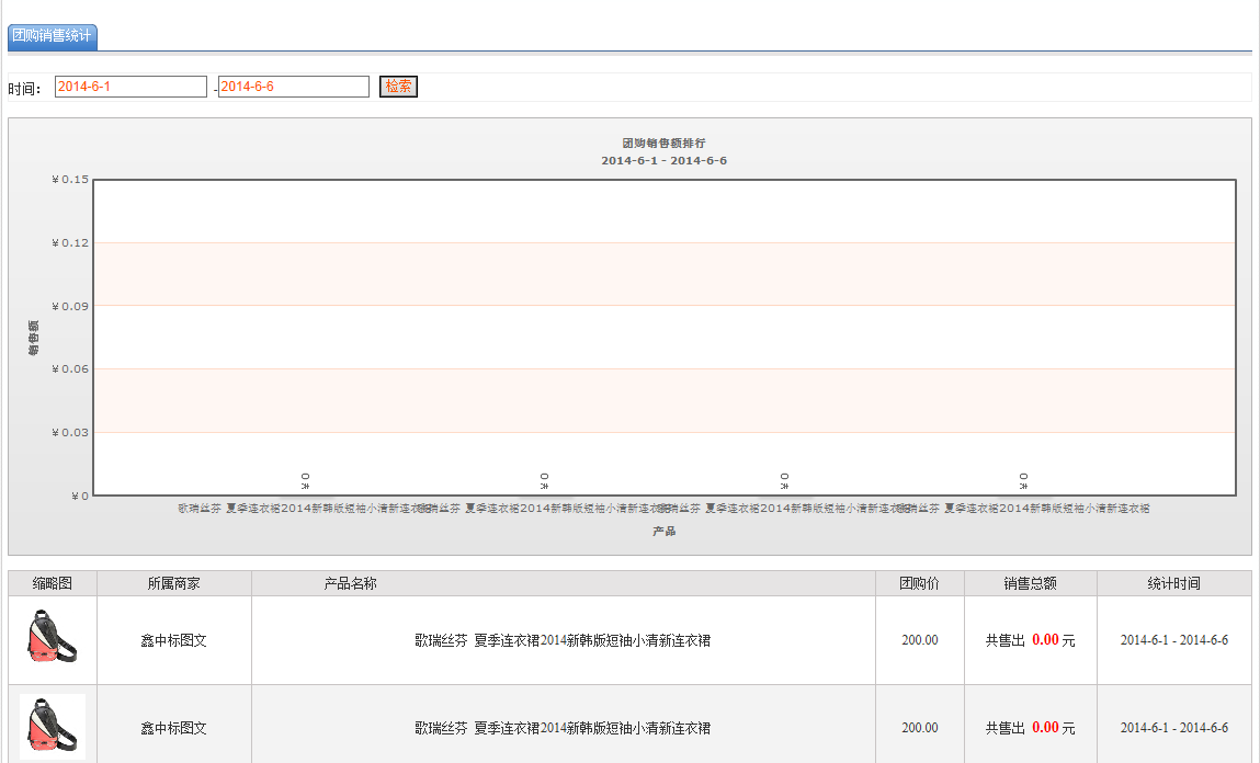 平臺運營商可在此查看所有團購產(chǎn)品的銷售排行;并可根據(jù)時間檢索數(shù)據(jù)。下圖為細(xì)節(jié)說明: