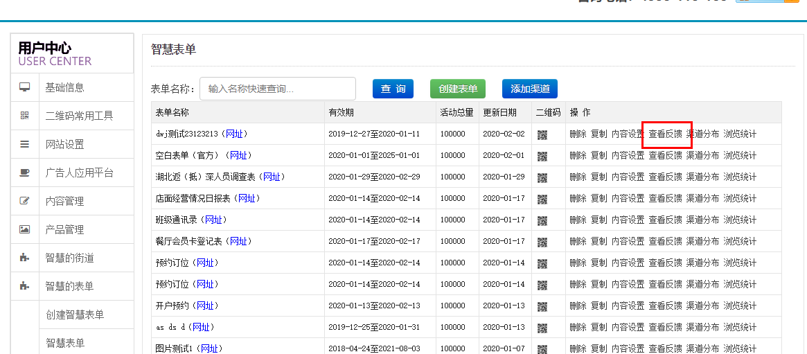 2、在表單列表中,點擊查看反饋