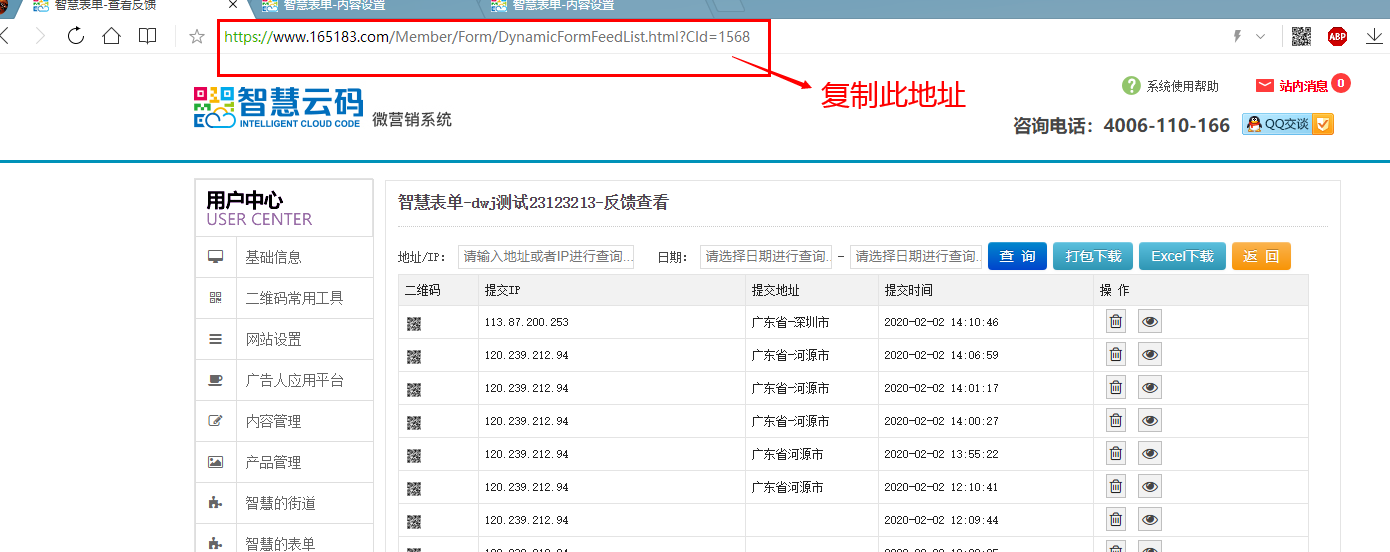 3、復制反饋地址,發給使用者