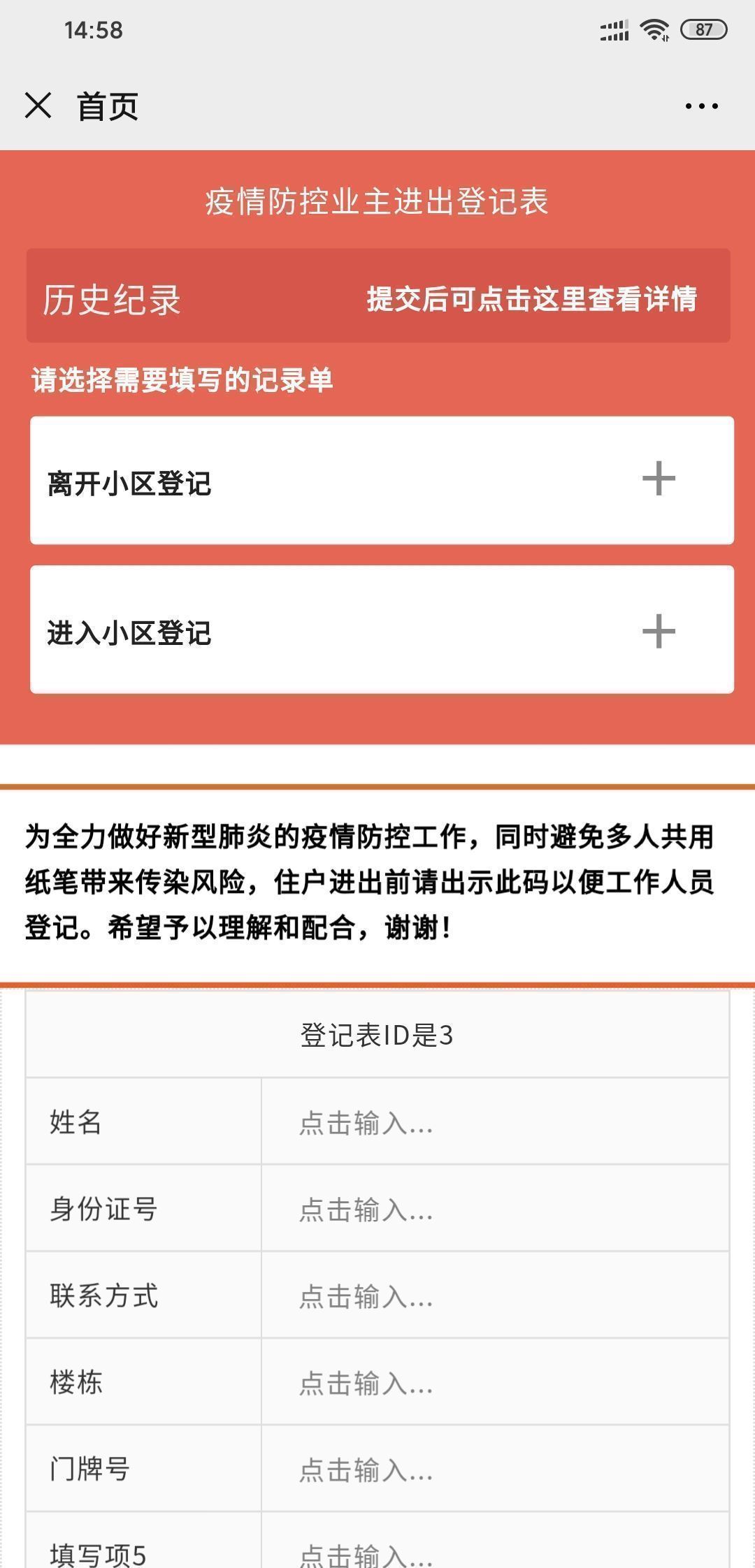 感謝您一直以來對智慧云碼的支持及信任。智慧云碼系統已于2020年2月18日進行功能更新,本次具體更新如下: 新增出入登記功能。 本功能適用于各小區、商城、辦公樓、產業園等物業場所,用于物業管理人員對業主、訪客、出入車輛等進行數據登記。本次上線三套模板,分別適用于 業主登記、訪客和車輛登記等! 本功能已向所有智慧表單用戶免費開放!